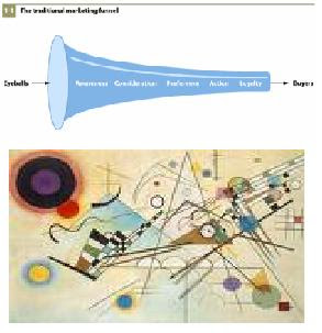 3. Forget about the marketing funnel. We're already starting to see that social media in all its forms is having a complex influence on the marketing funnel. The awareness, consideration, preference, action, and loyalty funnel stages don't look the same anymore. Peer reviews, social networks, blogs, microblogs, prediction markets, virtual worlds, wikis, and social advertising are all making the marketing funnel look more like a Kandinsky painting than a linear process.